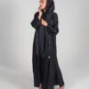عبايه قصة كتف بسحاب كستمايز لوقو ( عربيه) قماش حرير مغسول ساده اسود مطفي خفيف ( لا يشف) مع الملفع